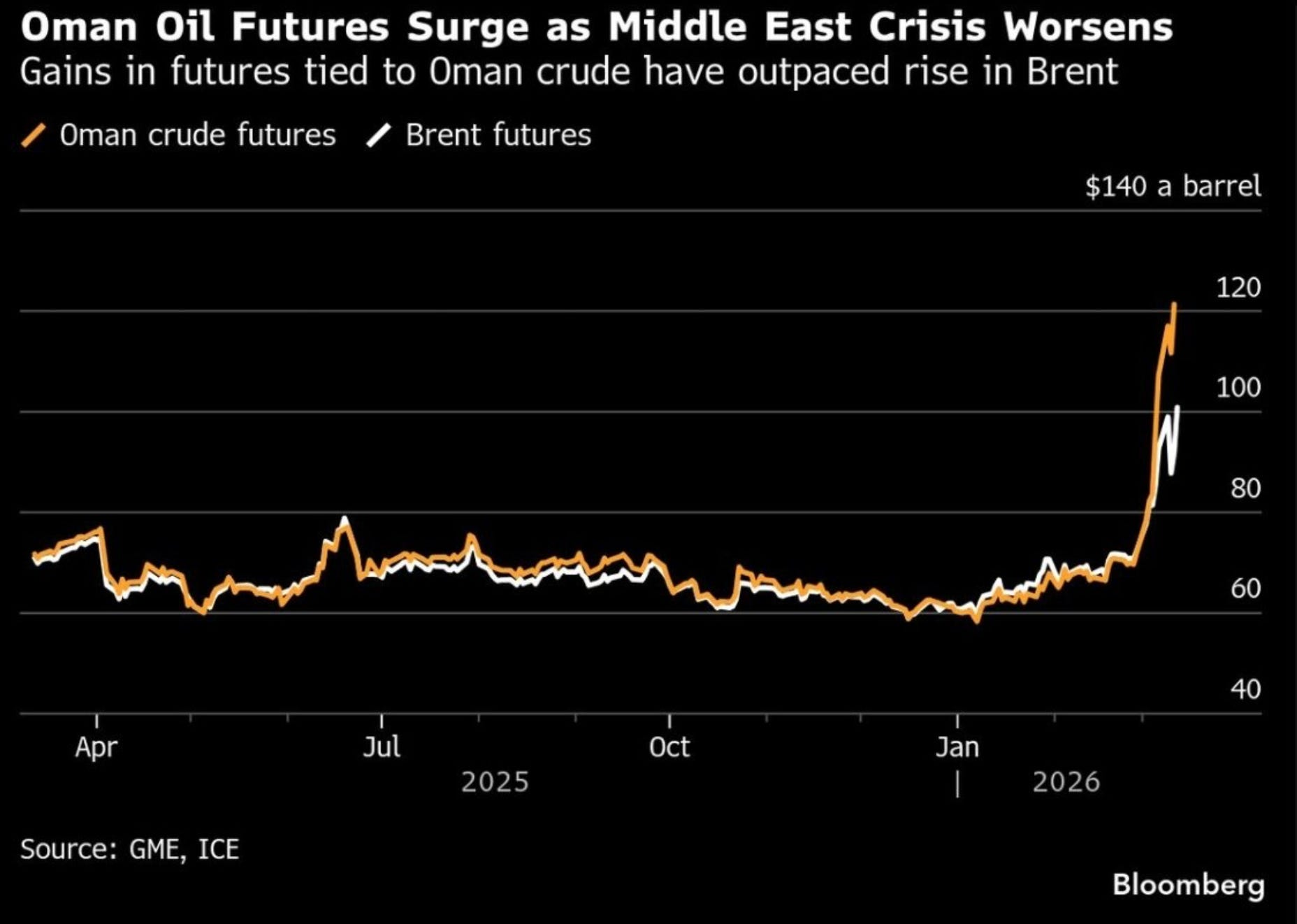 Oman Crude futures vs Brent futures (Source: Bloomberg )