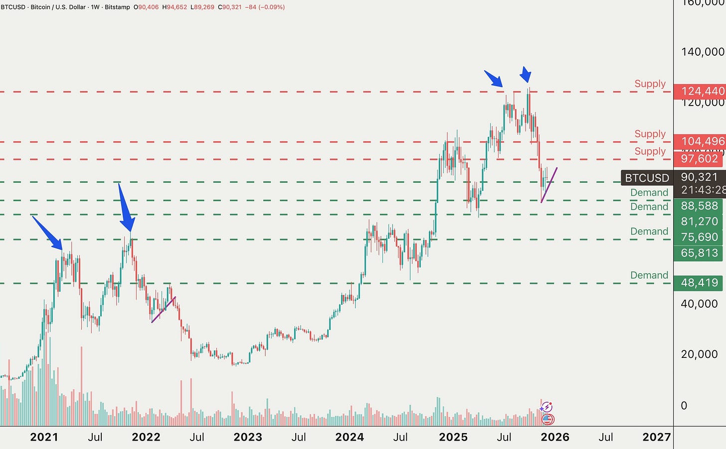 We might see a short-term bounce toward $97,000–$100,000 next week, but we wouldn’t trust that bounce to be sustainable.