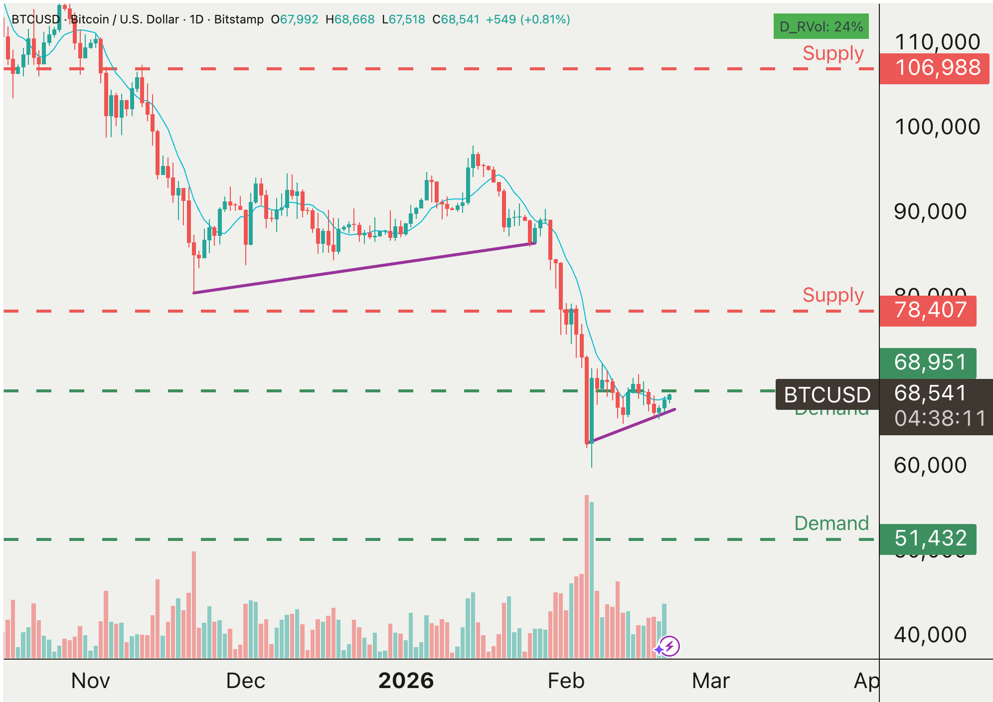 Bitcoin is currently stuck in $68,000–$70,000 range, and BTC is looking like another bear flag. 51k is still likely if we break down this level.