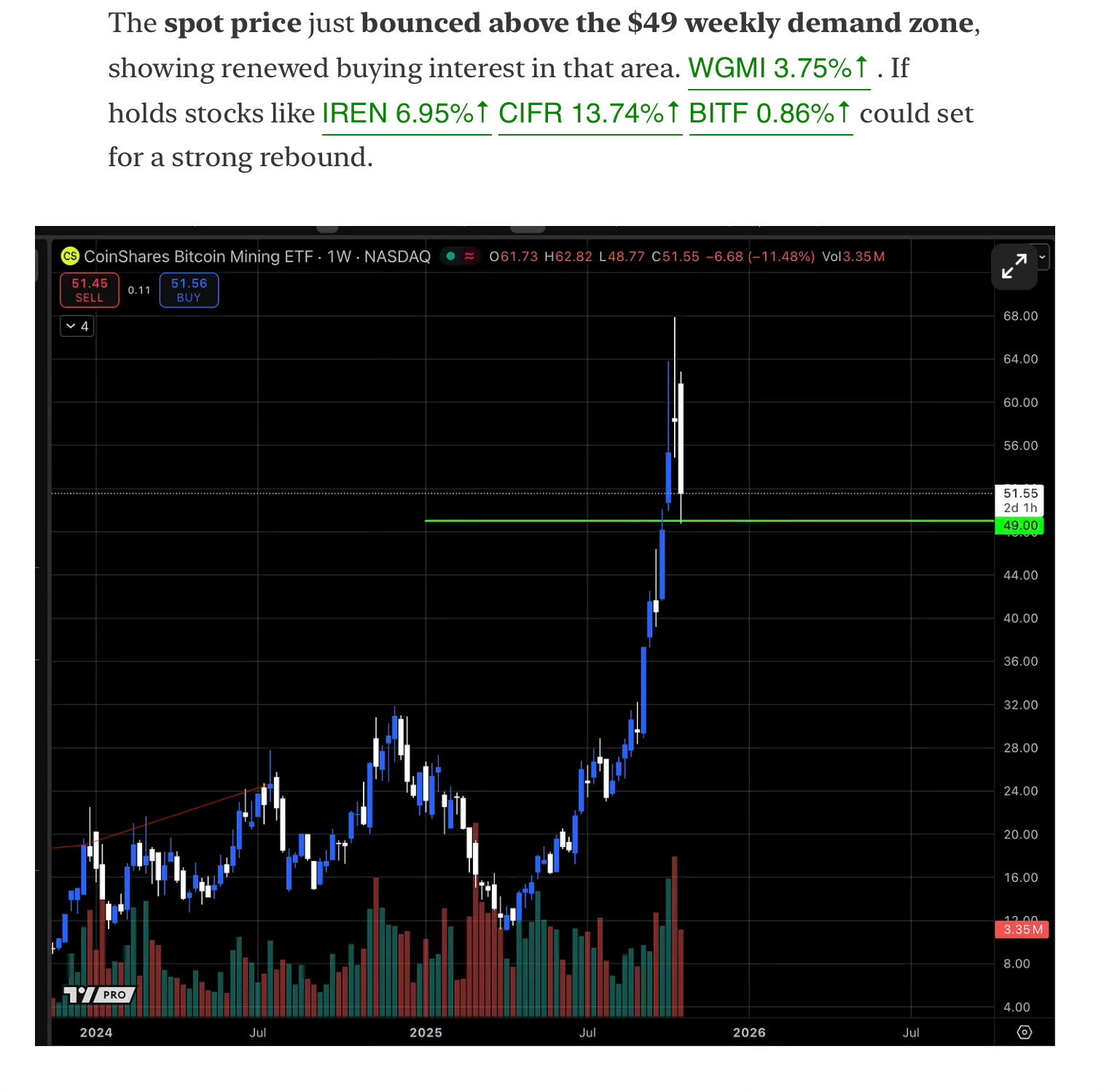 CIFR 0.00%↑ mining was up over 13% today and WGMI 0.00%↑ Bitcoin mining ETF moved over 22% since our Thursday’s post and trade idea (see below).