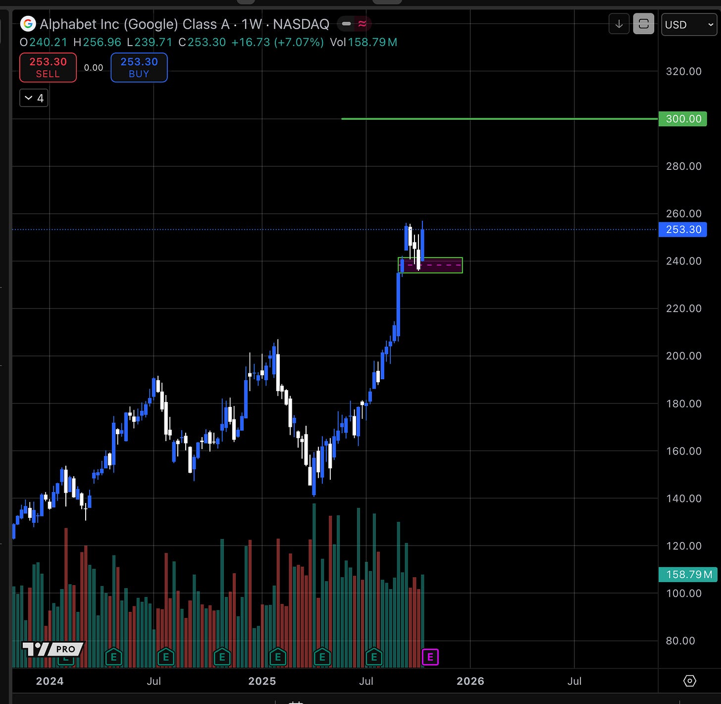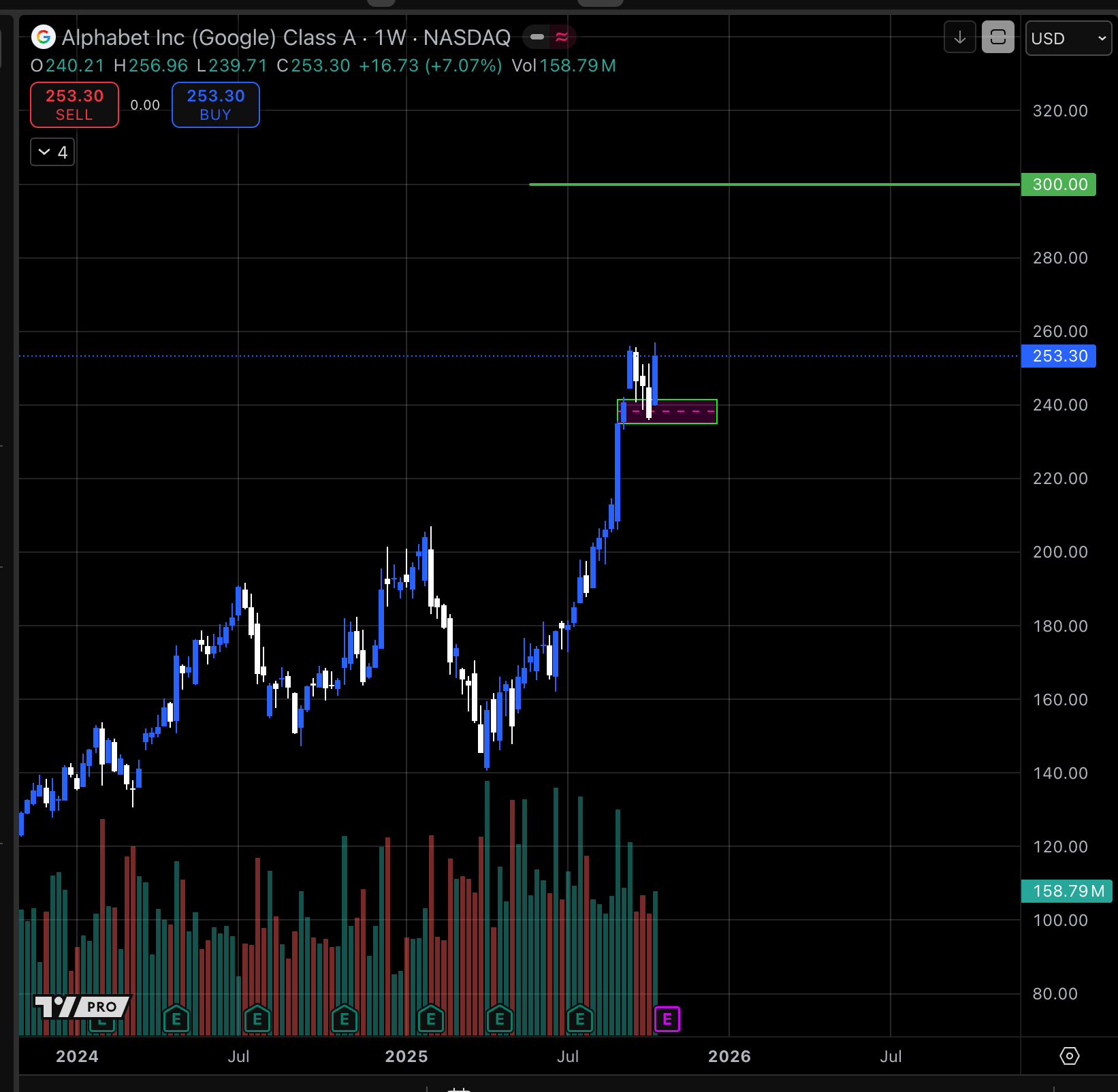 Alphabet GOOGL 0.00%↑ Advances AI through Google DeepMind and Gemini models for search and cloud services. While we like many other names, we’re focusing on charts, momentum, and price increase potential, making GOOGL a standout.