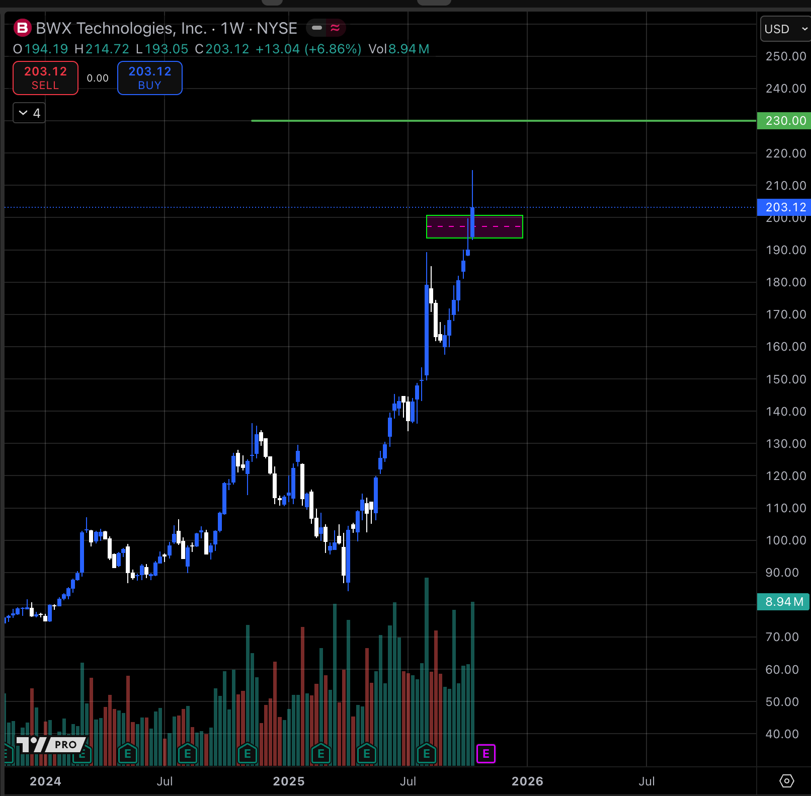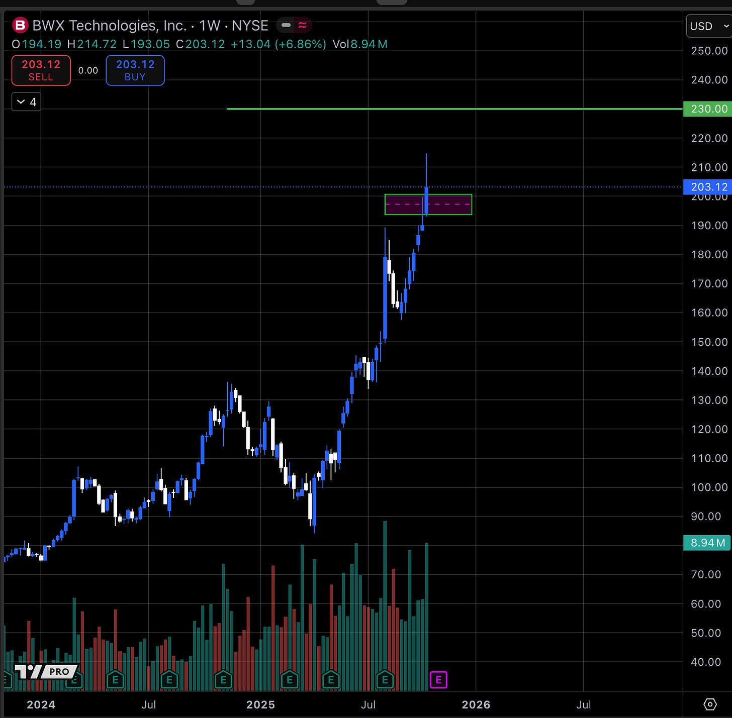BWX Technologies BWXT 0.00%↑ Supplies nuclear components and services.