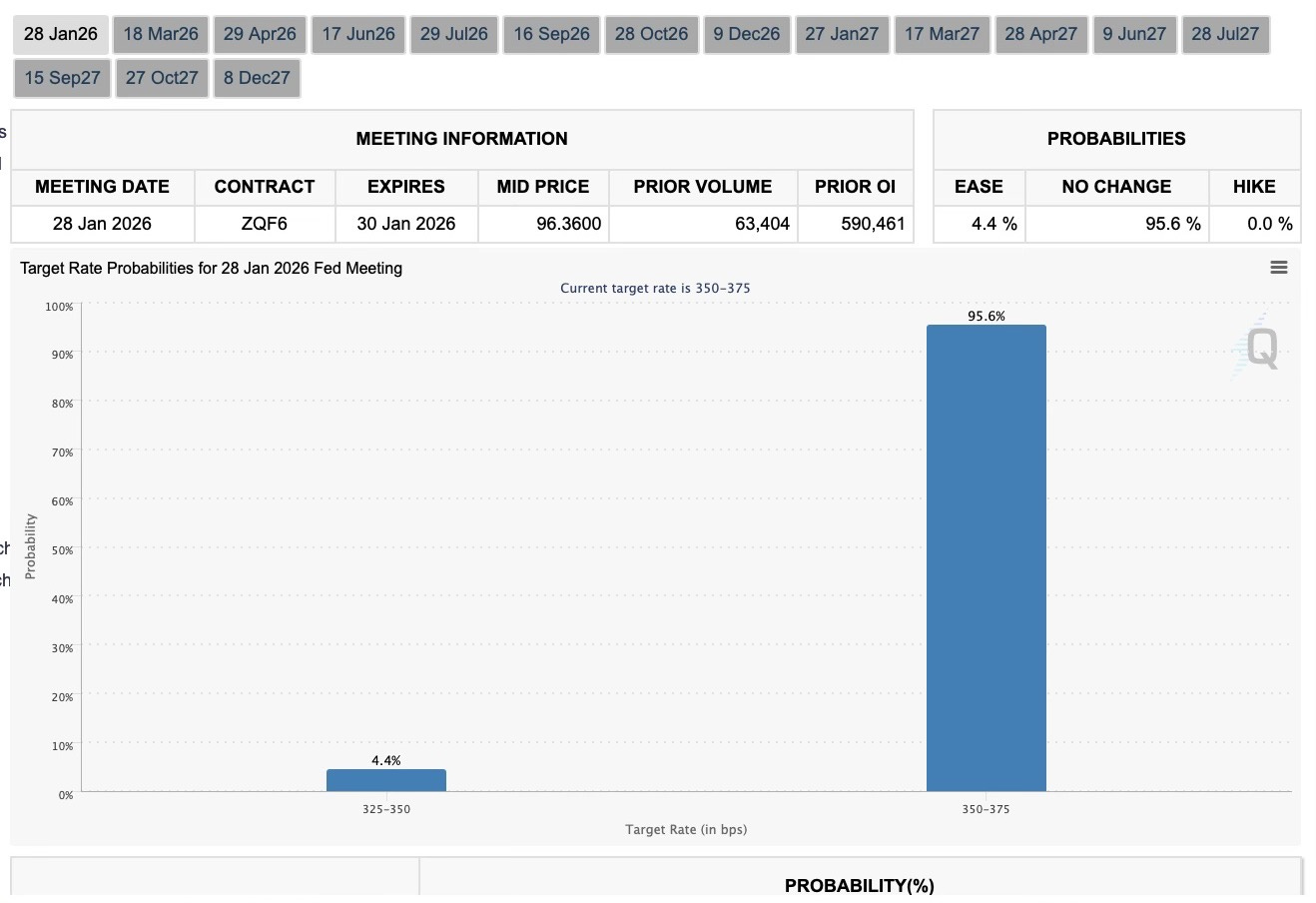 FOMC - The market is currently pricing in a roughly 95.6% probability that rates will remain unchanged.
