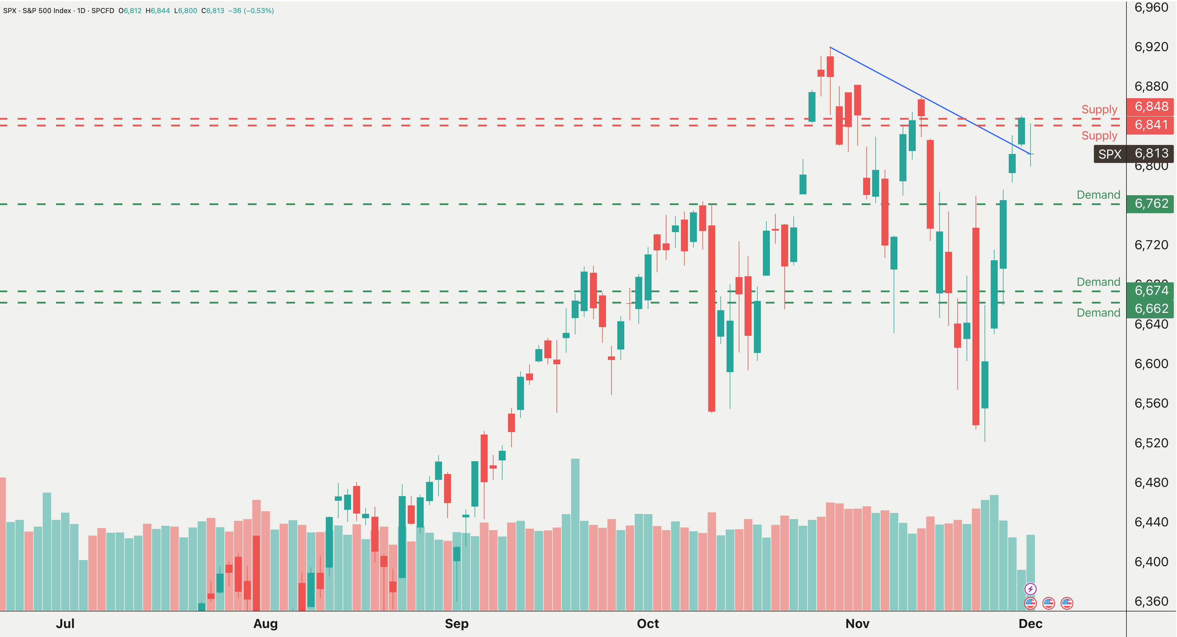 Support/Demand: 6,762, and inflection points at 6,674/6,662. A break below these levels is a significant concern.