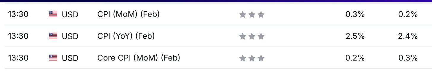 Data expected to be released on Wednesday, despite the PPI being way above consensus. the market is seeing a mild increase on the headline but they key data will be core. (source investing.com)
