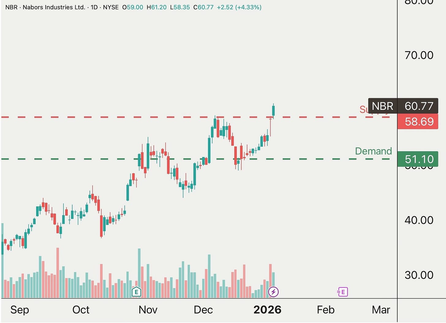 NBR trade: Entry $61, suggested stop at $51. Target $80+.