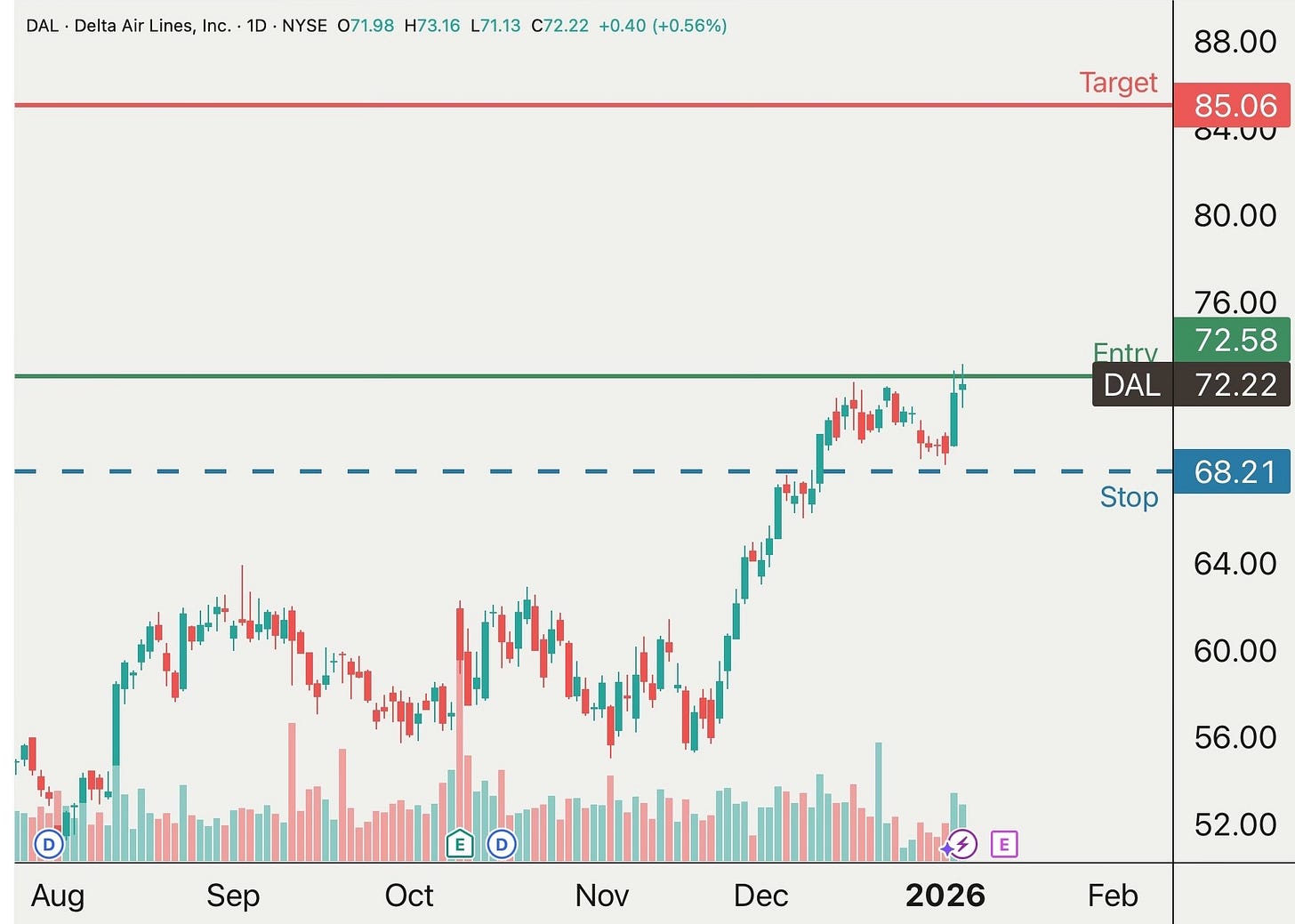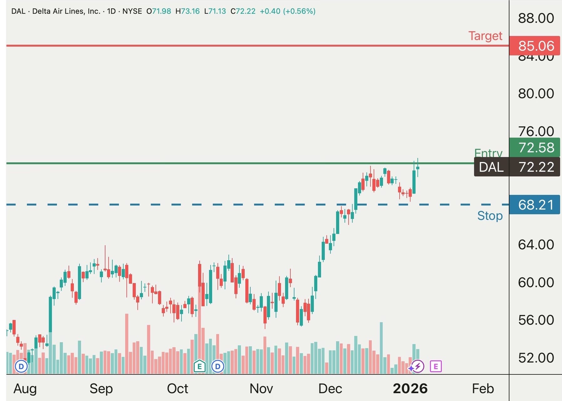 DAL 0.00%↑ UAL 0.00%↑ also had a good day, we will be closely watching Delta Airlines, because the breakout wasn’t strong enough and another attempt to cross $73 could play out well.