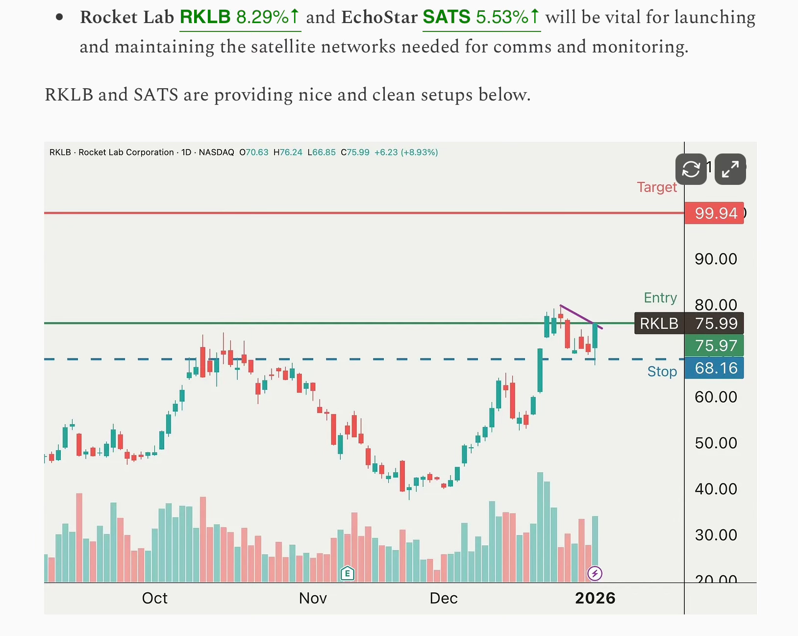 A trade idea we spoke about on Sunday, RKLB 0.00%↑ had insane day. We took the breakout play at 76.25, and we were up almost 13% in a day so we closed 50% of the trade close to $86. We have 50% of the shares left with stop at $80.