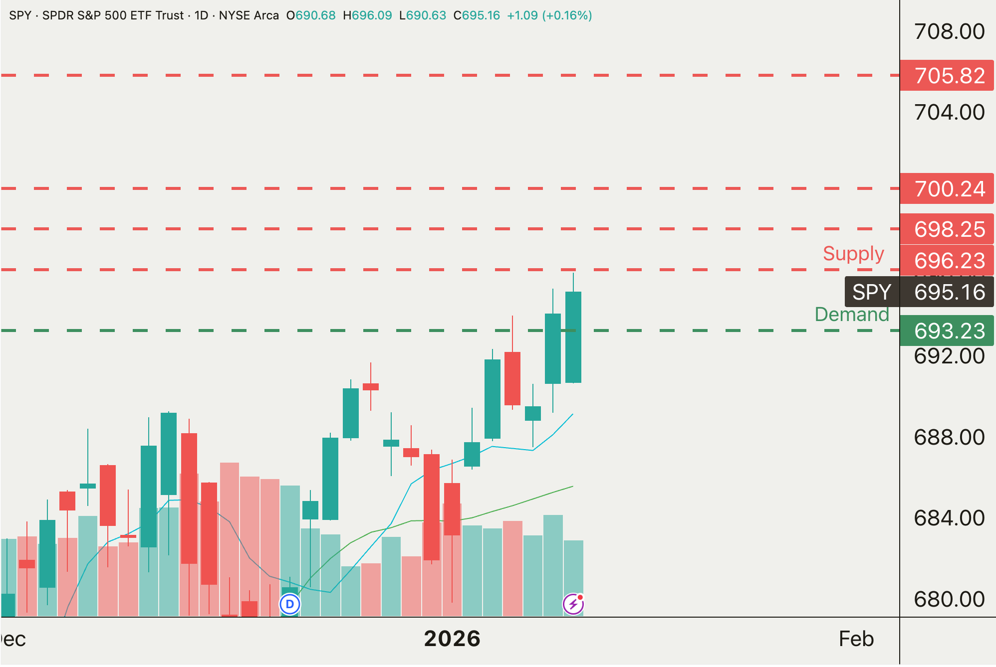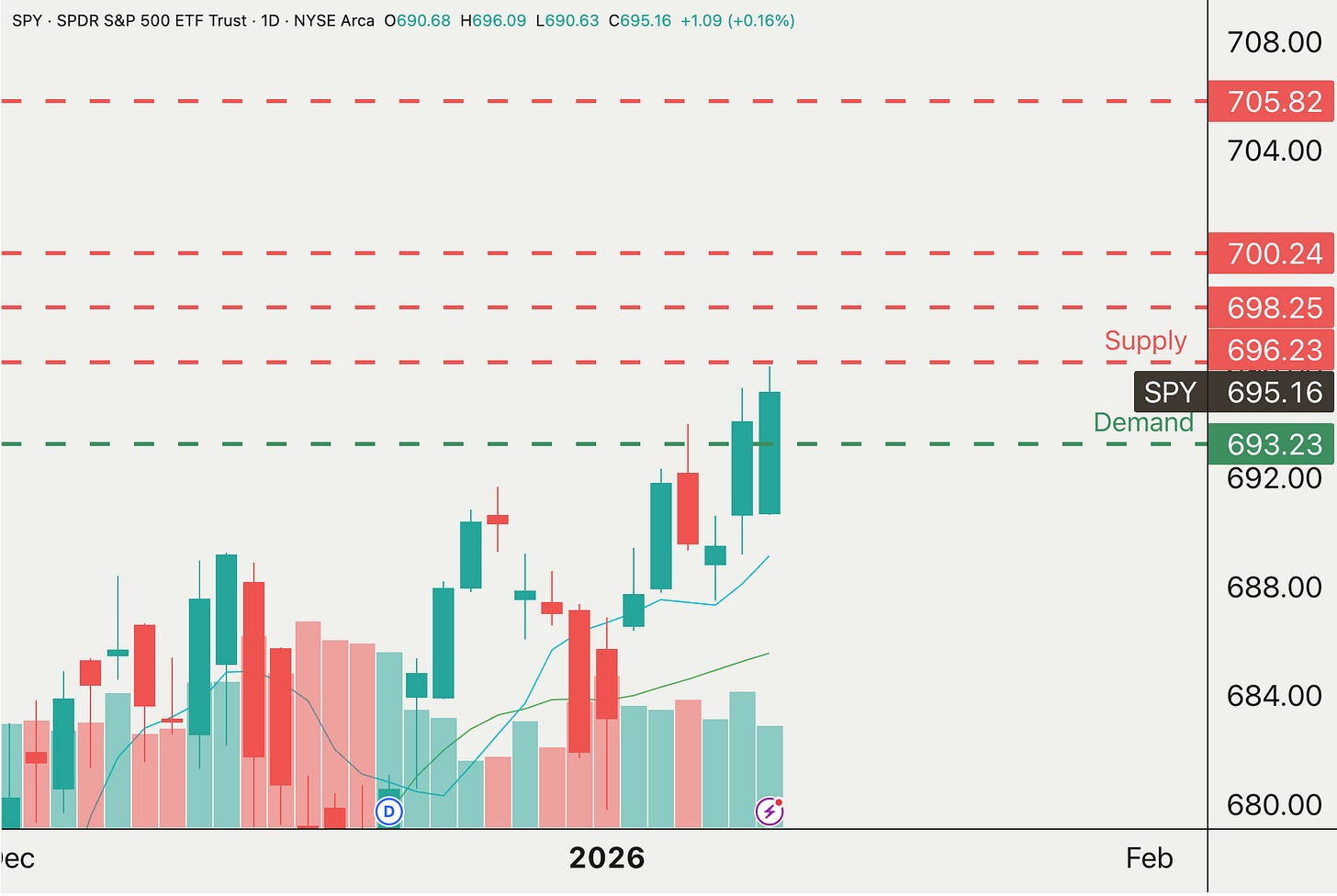 If we break demand zones we will probably retest the trendline. That would be a red flag to break the violet trendline. For now we’re in an uptrend and about to start earnings season tomorrow with Delta and JPM, just to name a few. We’ll see what tone those earnings set for the rest.