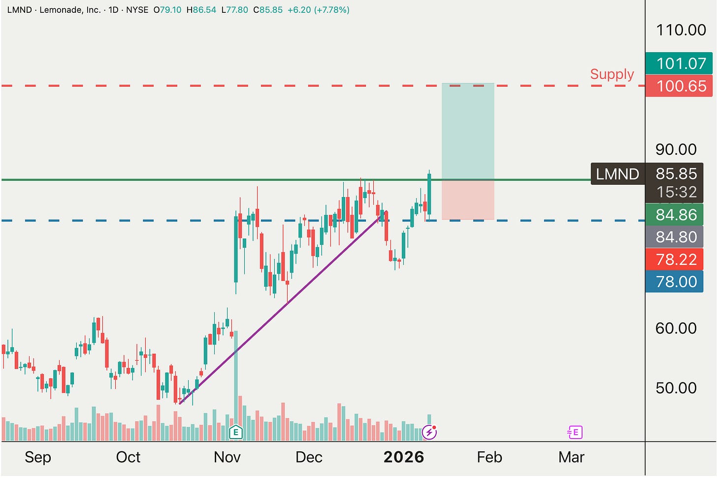 Lemonade (LMND) has shifted from a speculative "insurtech" to an AI-native powerhouse on the verge of profitability. Following a 140%+ rally in 2025, the hype is driven by its proprietary "Lemonade LLM" and a path to EBITDA breakeven by Q4 2026. With over 55% of claims now handled instantly by AI and a newly initiated $98 price target from Truist, LMND is a key "Gamma Squeeze" candidate as it proves that AI-driven underwriting can structurally collapse traditional insurance cost ratios.