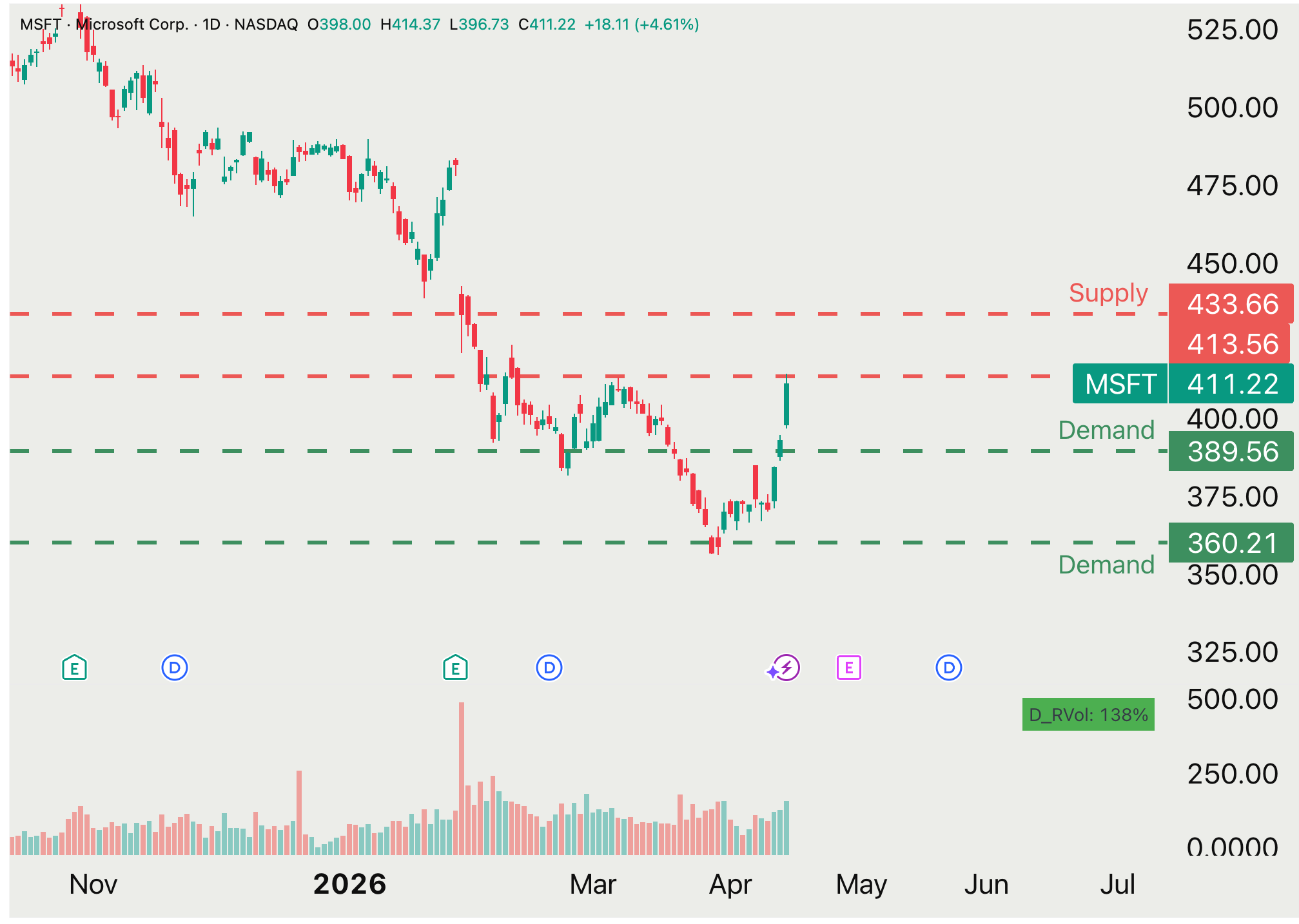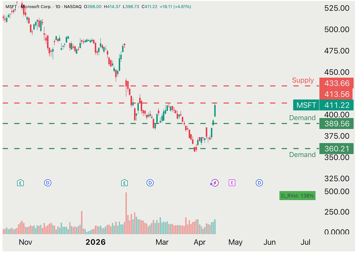 Our MSFT 0.00%↑ analysis and dip buy at $360 now brought over 15% in return and we’re also hitting a resistance.