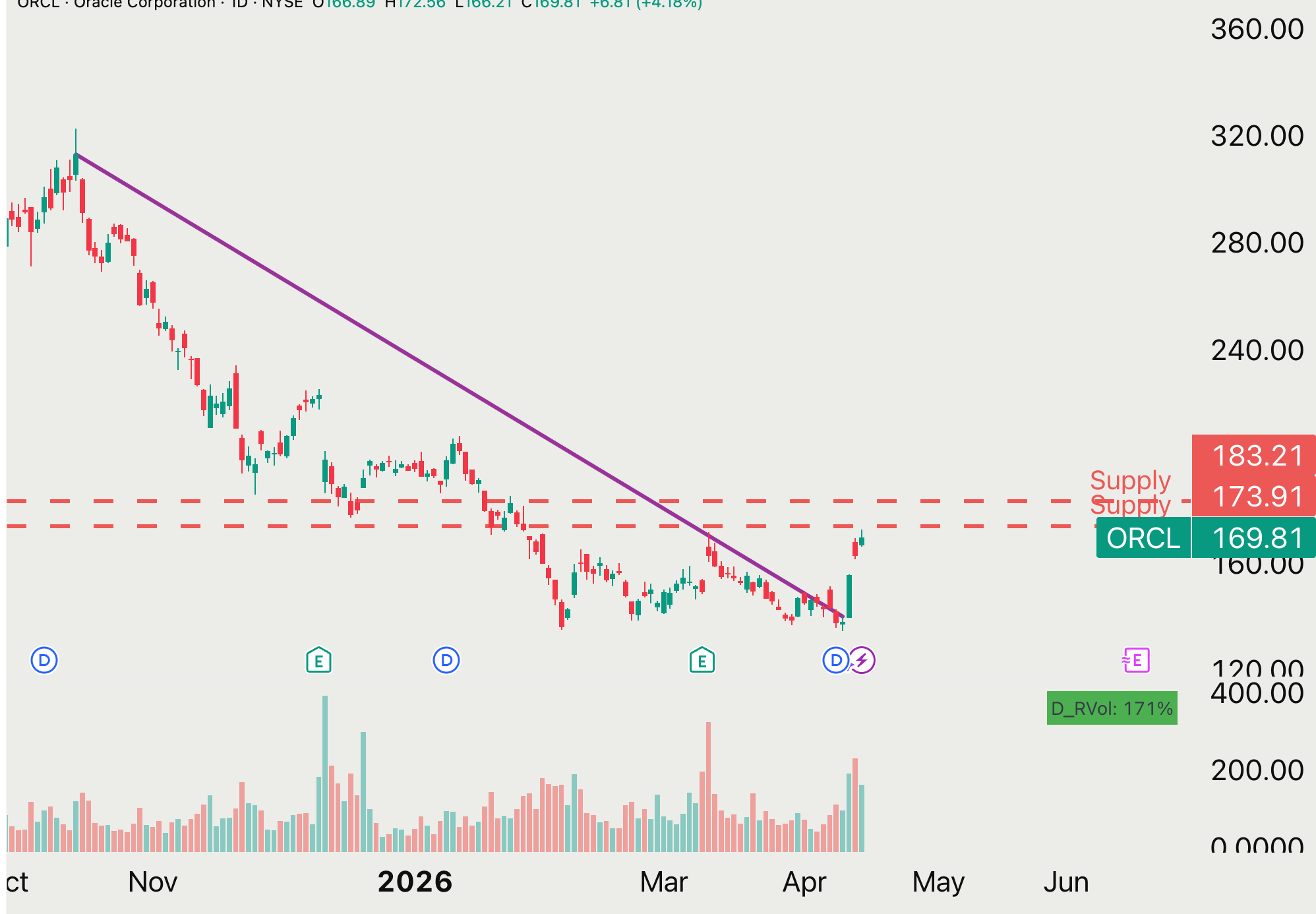 We posted ORCL 0.00%↑ for you yesterday, it hit our target perfectly.