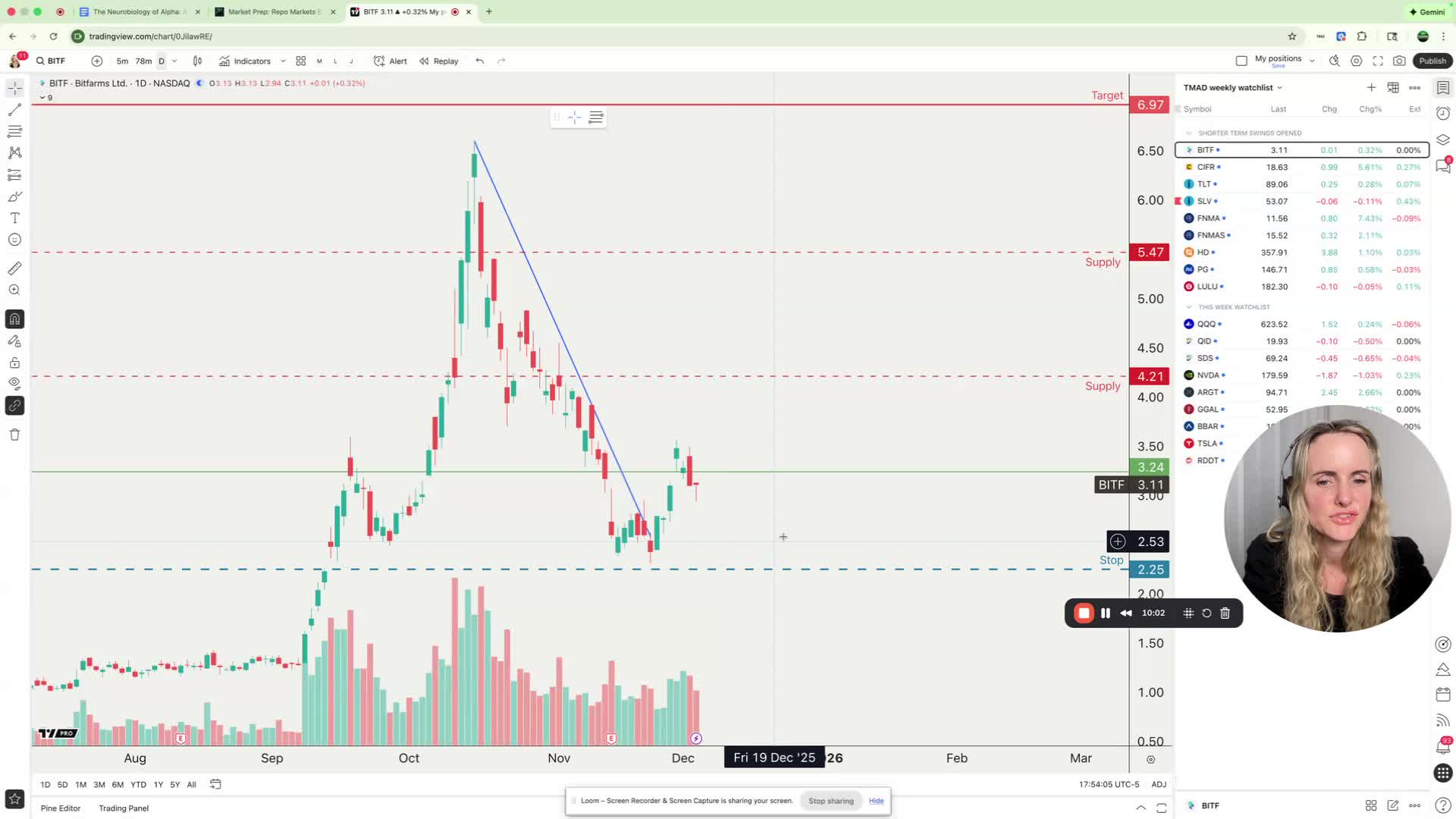 Familiarize yourself with chart indicators such as entry points (green) and supply levels (blue).